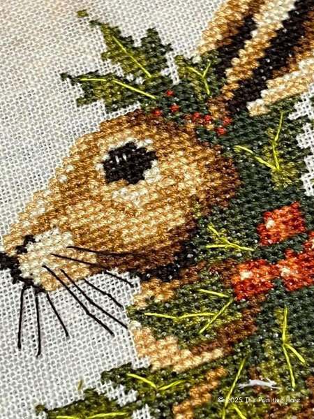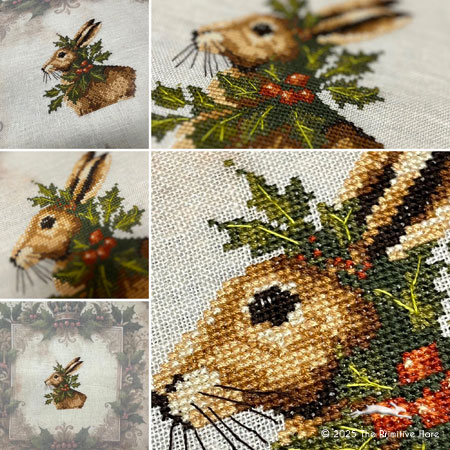 The model was stitched on my brand new fabric, CHRISTMAS AT COURT, available in 30, 36, and 40 count linen, and also on request in 18 ct Aida. This particular sample was stitched on 30 ct by the wonderful Elisabetta, whose delicate work brought the design to life.